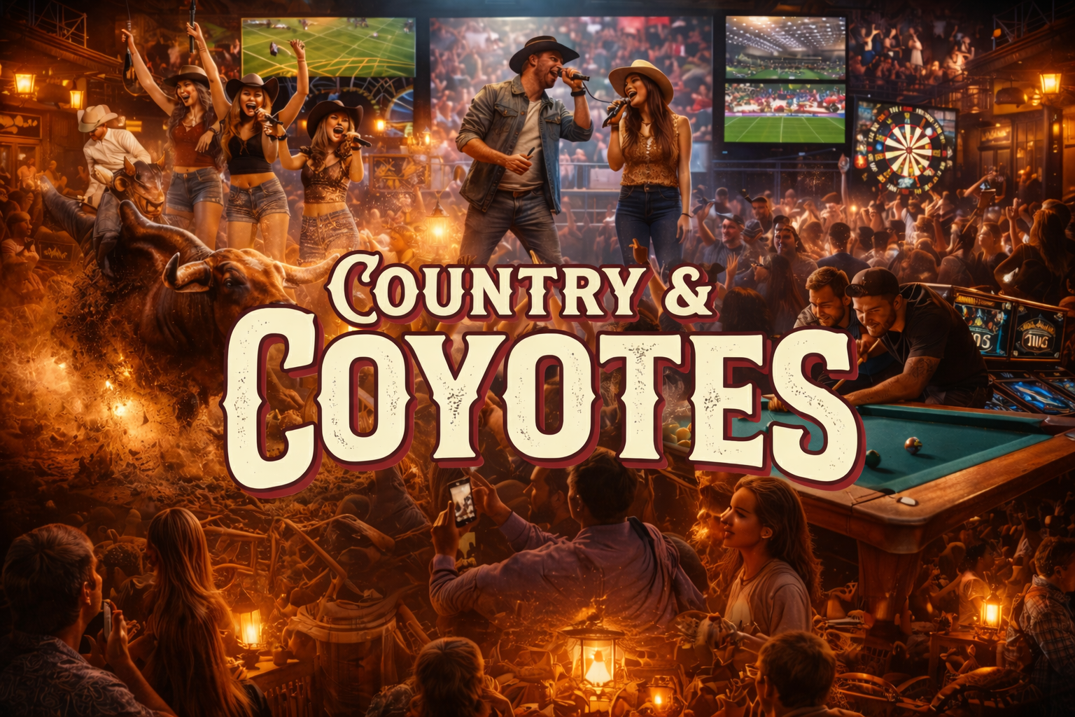 Expect live country singers, immersive Coyotes bar shows, a dedicated sports zone with wall-to-wall screens, rodeo bull challenges, karaoke saloon moments, games including pool, darts and hoops, plus fast-moving bars designed to keep drinks flowing. Private and semi-private areas are available for teams that want their own space within the action.